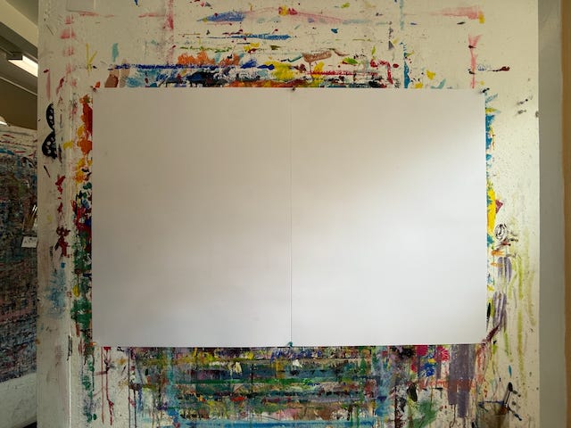 I was sitting in front of a large canvas, maybe 12 feet long and 5 feet tall, when my painting teacher Stewart called.