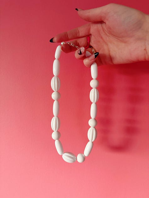 Also, beads can be very expensive lol. I really want to keep going with the necklaces, so I’m exploring more sources for second hand supplies and wholesale goodies. I love thrifted beads anyway, so it’s been fun treasure hunting.