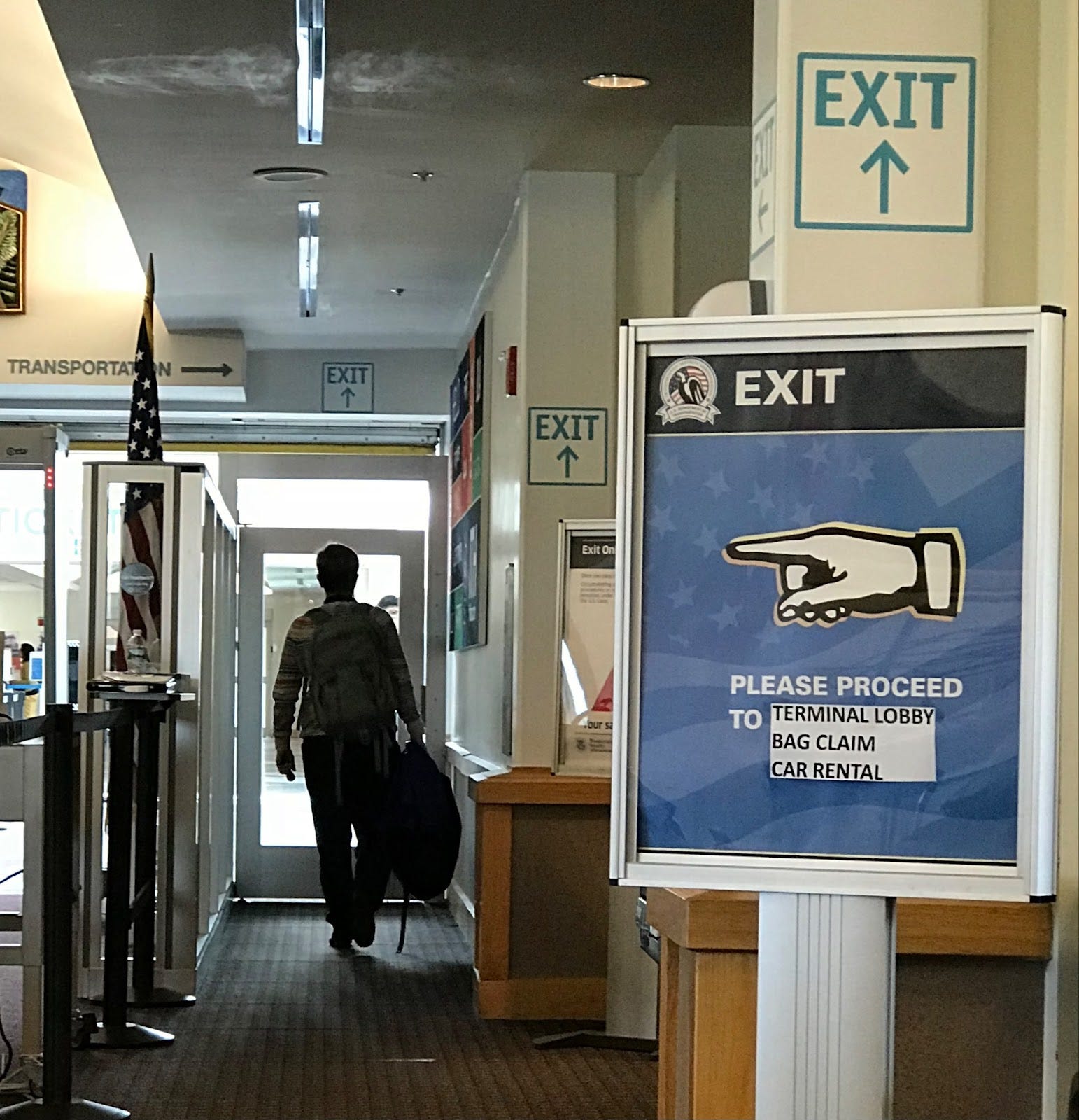 Pay attention. Look around you. Notice something new, like the fact that in this airport corridor there are at least six arrows, pointing in different directions. Then think about what you noticed, creatively.